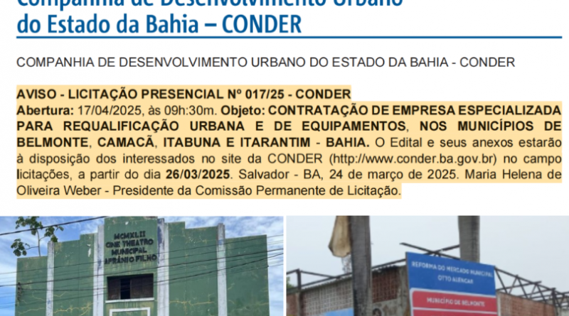 Read MoreO Prefeito de Belmonte, Iêdo Elias, sancionou nesta terça-feira (11/03) a Lei Nº 002/2025, que regulamenta a exploração do serviço
